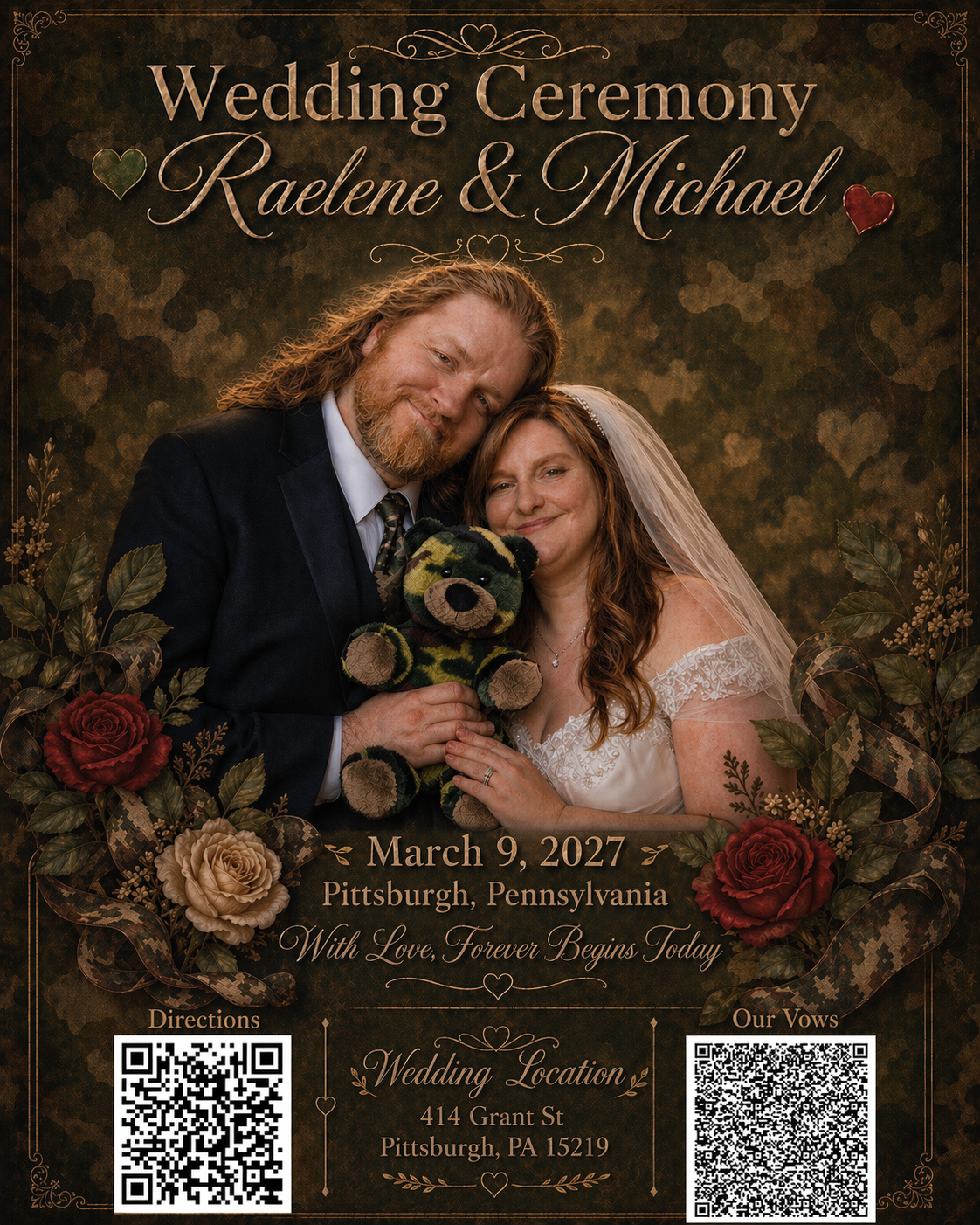 Join us on March 9, 2027, at 414 Grant Street, Pittsburgh, PA 15219, as we celebrate our love and make it official. We can’t wait to share this unforgettable moment with you!